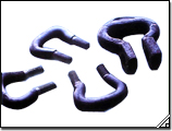 環鉤直徑 | 節距 | 圓弧 半徑 | h | h | h | 試驗負荷 | 破斷負荷 | d | t | 允差 | R | R2 | R3 | mm | KN | 18 | 64 | ±0.6 | 11 | 24 | 6 | 89 | 27 | M12 | 196 | 320 | 22 | 86 | ±0.9 | 13 | 30 | 8 | 105 | 33 | M16 | 294 | 480 |