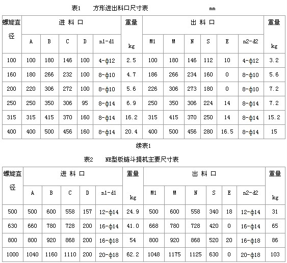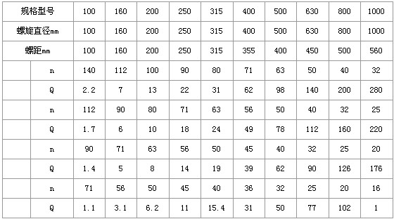 LSII型螺旋輸送機直徑從100mm到1000mm,共十種規(guī)格,長度從4m到70m,每0.5m一檔。