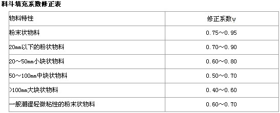特性查表2求得ψ修正值予以修正則為能力輸送量。物料容重按r=1t/m3