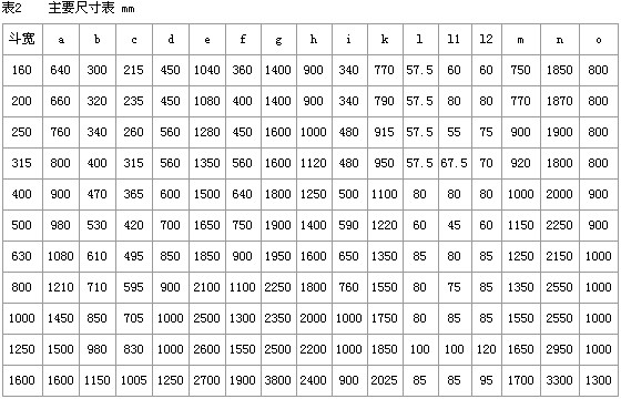說明: 1.料斗容積為盛水容積,輸送量按此斗容計算時為100%填充,具體選用時應根據物料