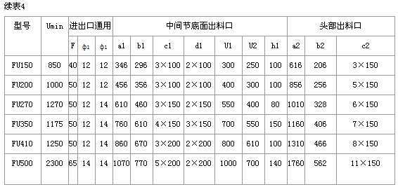 五、FU型鏈式輸送機外形總圖及尺寸表